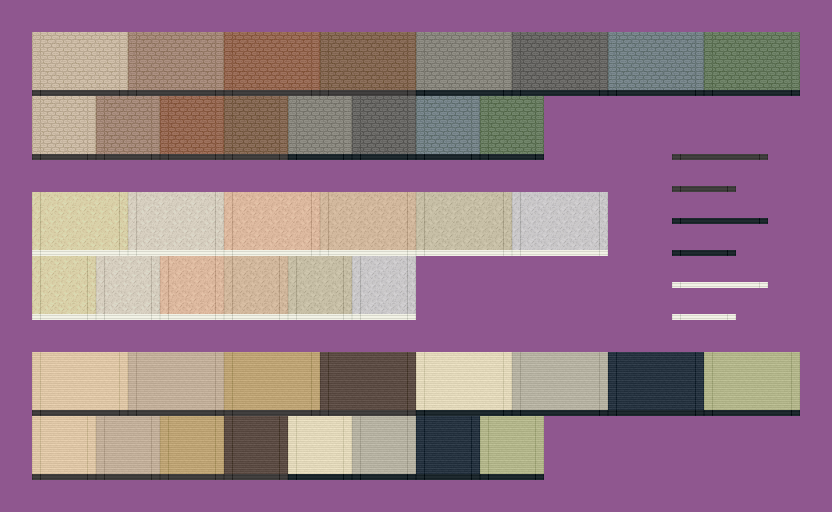 とりあえず、前回の建物外壁素材、こんなふうに色違いをいろいろ作ってますよーっていうのを見せて、お茶を濁す作戦。